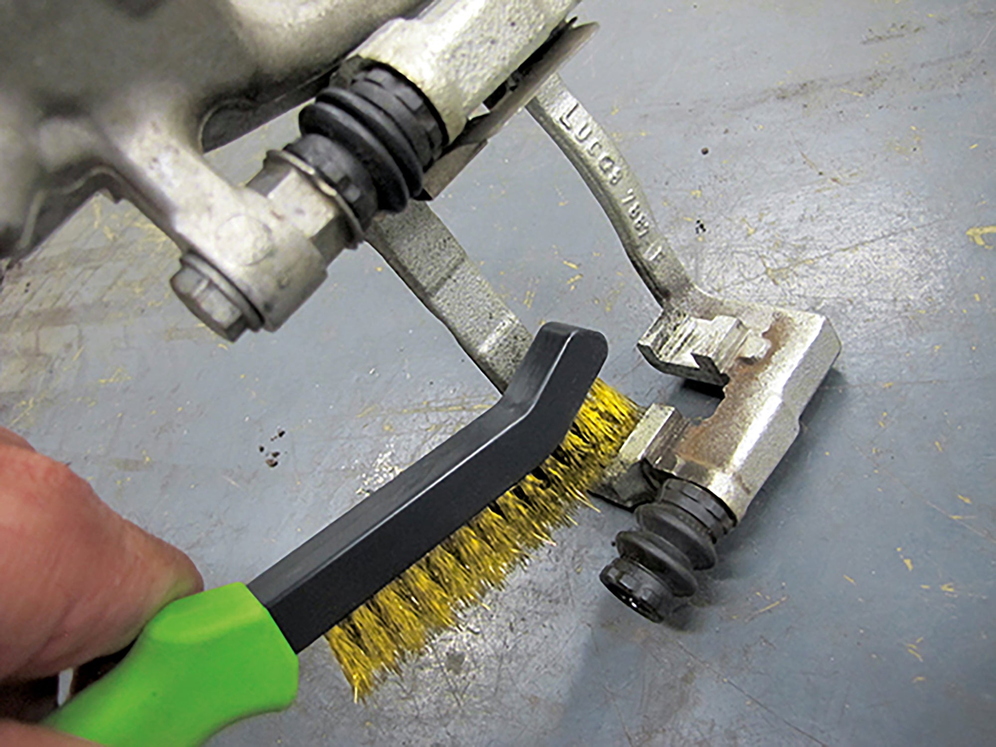 • Brass brush for safe use on aluminium calipers - soft brass bristles help prevent surface damage