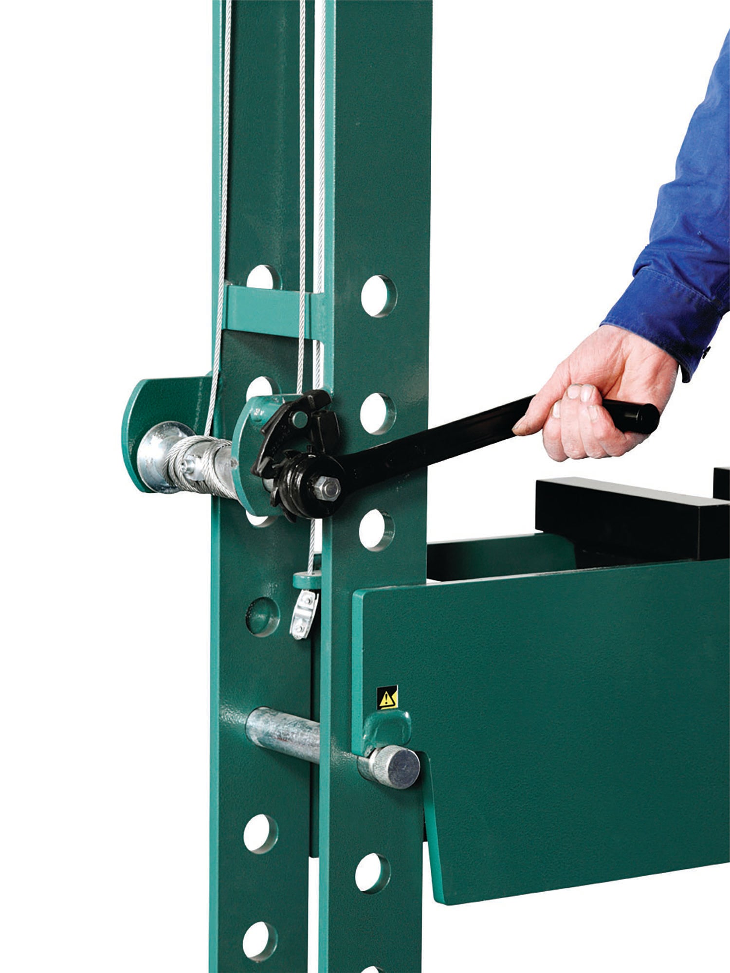 • Fast and safe adjustment of the press table height, using a braked winch