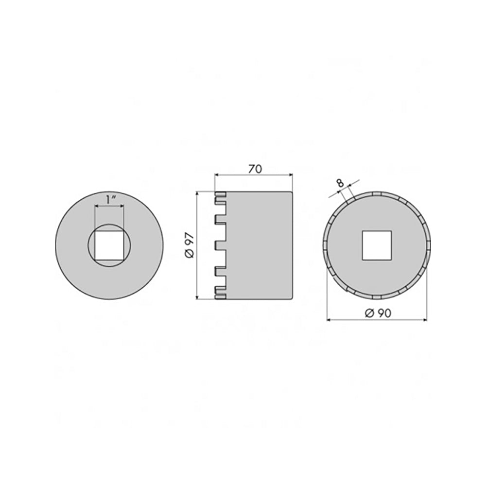 Technical data: 12-teeth - tooth width 8 mm Inner Ø 90 mm - Sq 1”   Application: BRG year 2001 Suitable... Read more