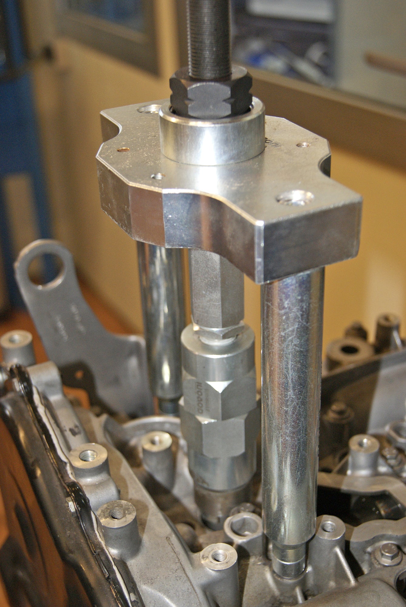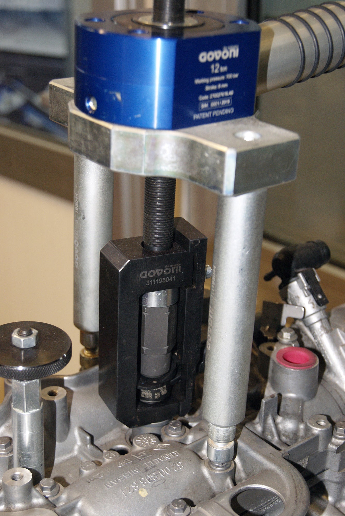 The extraction frame and support columns are specifically designed to match the engine layout, ensuring secure mounting and efficient operation. This reduces removal time and helps avoid the need to remove the cylinder head.
